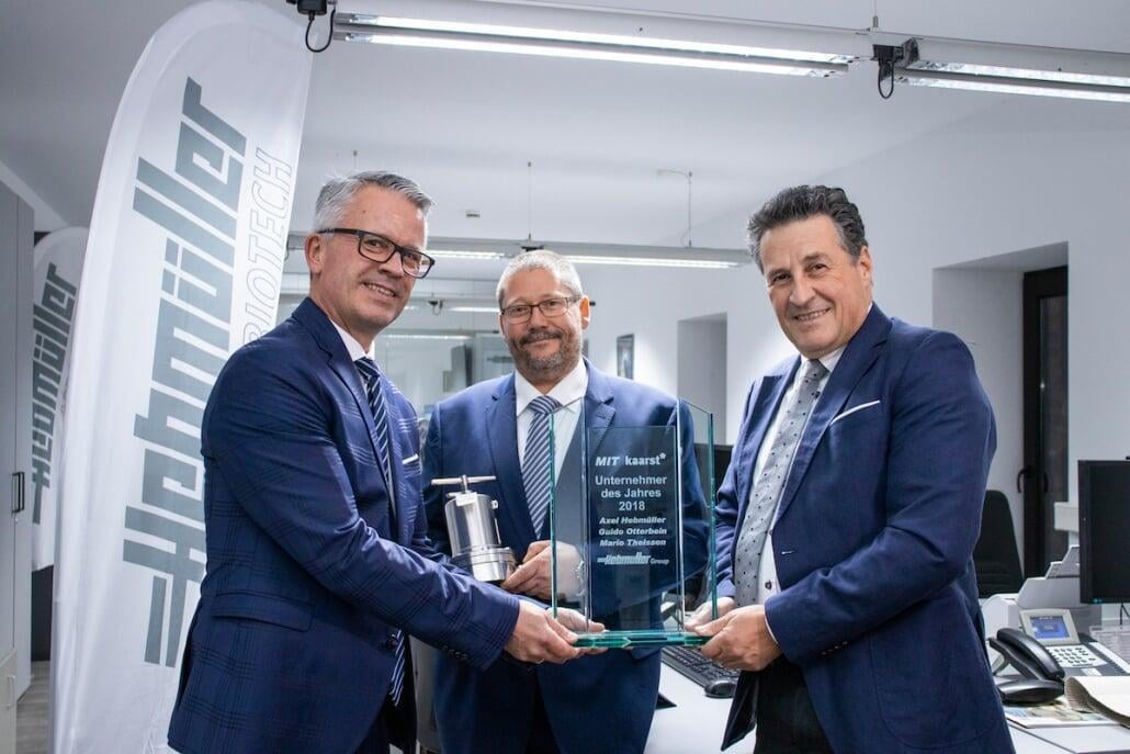 Der Vorsitzende der Kaarster Mittelstandsvereinigung, Markus Steins, erläuterte in seiner Laudatio die bedeutendsten Stationen und Erfolge der Hebmüller Group und überreichte die Auszeichnung.
